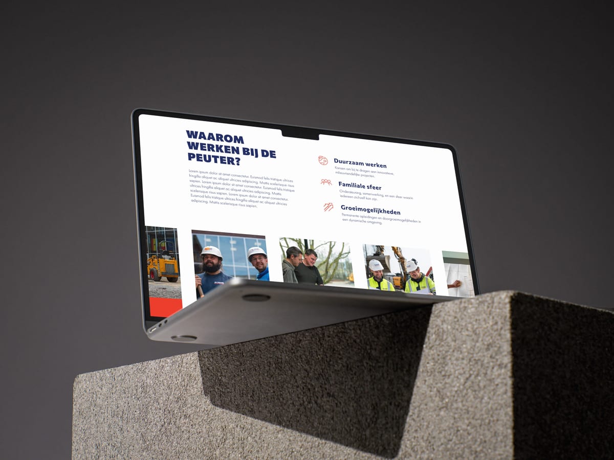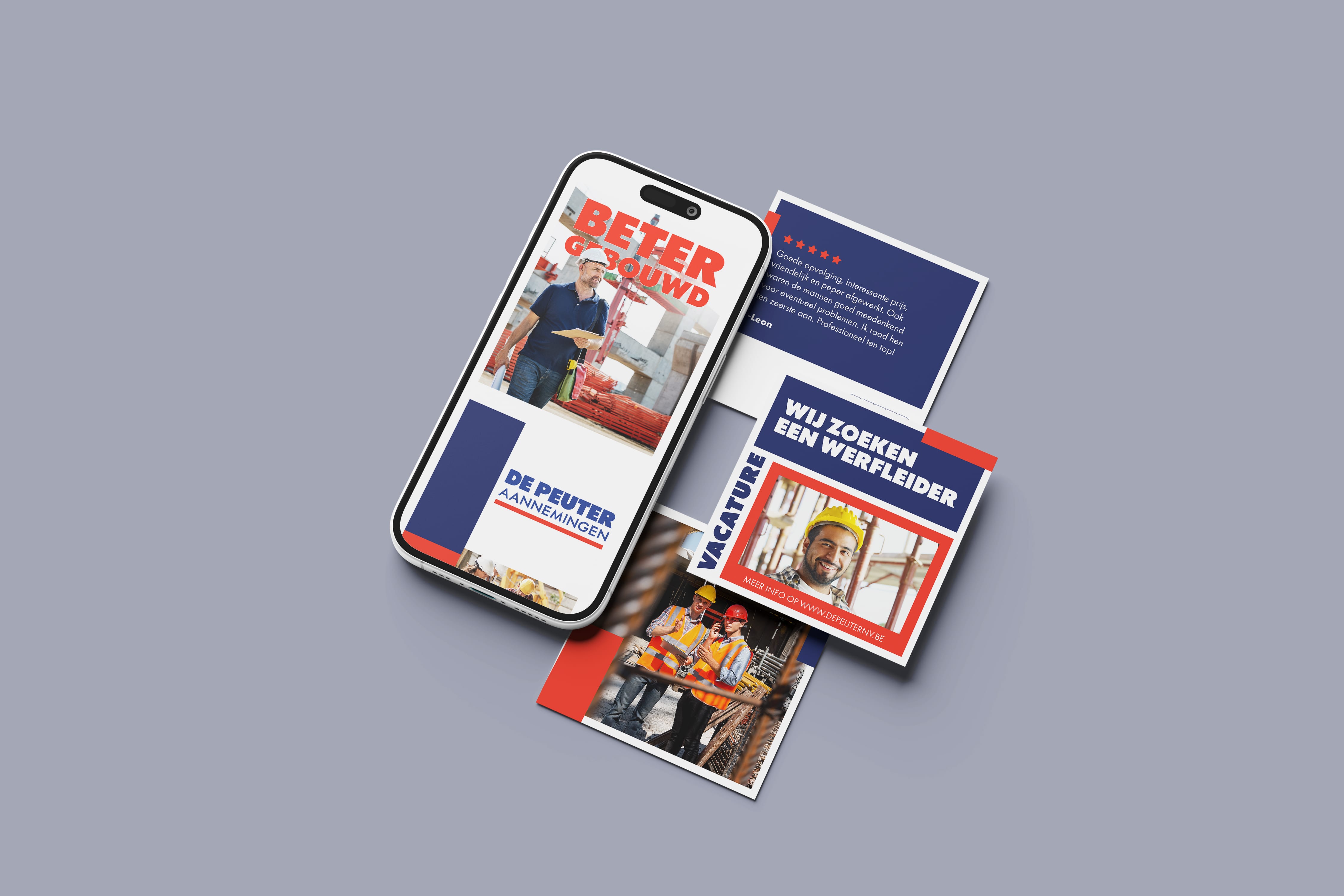 Voor De Peuter namen we de volledige merkbeleving onder handen: een fris logo, een nieuwe website, professionele fotografie en uitgebreide brandondersteuning. Zo versterken we niet alleen hun uitstraling, maar geven we hun visie praktisch vorm.