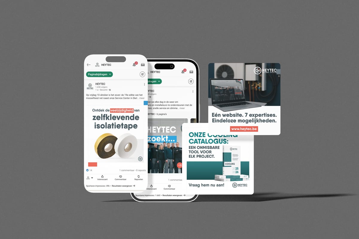 HEYTEC, dé koeltechnische groothandel van België, schittert dankzij een uniforme huisstijl. Van de plakband op elk uitgaand pakket tot de stijlvolle relatiegeschenken: we hebben overal onze stempel op gedrukt. Ons team ontwerpt alle promoties, social media posts, en advertenties in vakmagazines. Bij MENTALL zorgen we ervoor dat HEYTEC op elk niveau uitblinkt en herkenbaar is.